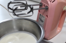 | 2人分材料(4人分以上できる・パーティーなどに) ●卵 2個 ●生クリーム 1パック(200cc) ●牛乳 300cc ●粉ゼラチン 2袋(1袋5gとして) ●果物 切った状態で約1と2/3C 苺の季節ならいちごなど 果物缶詰(黄桃など)1年中大丈夫 1缶 固形量250gとしたら 1缶全部でちょうどいい 〇砂糖 65g 〇ハンドミキサー(電動泡だて器)があると簡単 〇手動泡だて器 ※この分量で直径20㎝のババロア型にぴったり パウンドケーキ型なら2個分 黄桃缶で作りました |