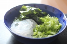わかめとマロニーの 酢の物 レタスを盛り合わせても |
