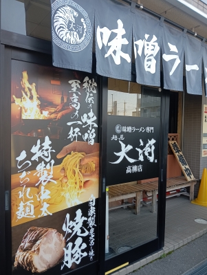 | 麺屋大河高柳店 ●住所 金沢市高柳2-15-1 高柳交差点のテナント内 ●電話番号 076-252-7773 ●駐車場 お店の前(3台) 裏側(13台) 本店よりも駐車場 が多い ●公共交通機関 東金沢駅から 徒歩10分 |
