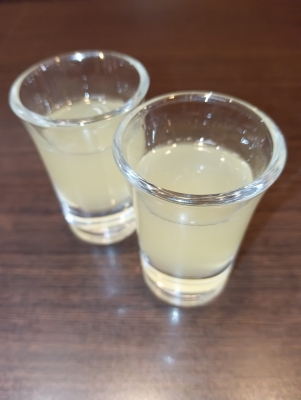 ![]() これがうわさの食前に出される”生姜ジュース”です。 サービスなので無料です。 ショットグラスに入っているのが、かっこいい! ラーメンが食べられなくなるほどの量ではなく ちょっぴりなのでいいと思います。 実は量が多かったらいやだな〜と思っていました。 このお店は生姜ジュースやおろし生姜をのせた ラーメンなど生姜が大好きなんですね。 私も生姜は大好きなんですが、味噌ラーメンには 合わないと思いますが、食べてみます。 |