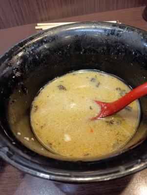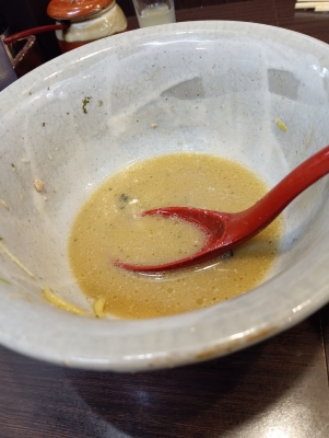 ![]() こちらが特製牡蠣味噌ラーメンのスープです。 牡蠣の方のスープは味噌の味が あんまりしなくて残念でした。 それと牡蠣の味もあまりしませんでした。 大きいのが3つも入っているのに どうして牡蠣の味がしないのか……。 生姜が味噌味のスープに合わないと 感じました。体は温まるかもしれませんが。 医食同源で食べ物は薬なんですが、 体によくなくても美味しい方がいいなと感じます。 生姜をのせないで下さいと最初から 言えばよかったんですが、あんまり生姜の評判が よかったので、試してみたかったんです。 |