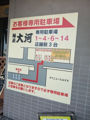 ![]() お店の前の駐車スペースには しっかり「麺屋大河」と書かれているので わかりやすかったです。 私たちは土曜日の開店30分前の10:30に 着いたんですが、誰もいませんでしたから お店の前に駐車できました。 インターネットには土・日には開店前から 10人以上の列みたいなことを書いてあったので 心配で早く来てみたんですが、開店時間になっても せいぜい6人待っていただけで そんなたいそうな行列ではなかったです。 食べてからお店を出る時も数人が待っていただけでした。 でもこれが12時半くらいになると どうなるのかはわかりませんが……。 |