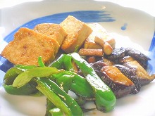 火 | 朝 | 焼き豆腐(すき焼きの残り)とえのき茸とピーマンのオイスターソース焼き![]() |