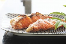 | 夕 | 焼き塩鮭![]() チリ産のシャケではありません。養殖のシャケは脂っこくて、好きではありません。 |