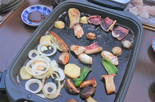 | 夕 | 鉄板焼き(牛肉・牡蠣・じゃが芋・玉ねぎ・人参・ピーマン・生椎茸) 久しぶりにホットプレートを使います。 ![]() |