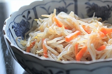 もやしと人参の酢の物 水曜に買い物した後、すぐにゆでて酢の物にしてありました。もやしはすぐにだめになるので。 ![]() |