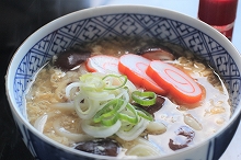 | 昼 | 卵とじうどん(赤まきかまぼこ・生わかめ・ねぎ)![]() |
