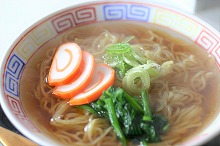 | 昼 | ラーメン(インスタントラーメン・ねぎ・赤巻きかまぼこ残り全部・ゆでキャベツ残り・海苔)![]() |