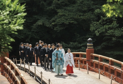 5分くらいで神橋バス停に到着。 東武日光駅から歩くと30分くらいらしいですから、 時間がたっぷりあれば歩けばいいと思います。 こっち側の橋(日光橋)から、赤い神橋(しんきょう)を見ます。 今は車が通るこの日光橋は、明治時代には馬車鉄道のレールが敷かれていたそうです。 神橋は大谷川(だいやがわ)に架かる朱塗りの橋です。 大谷川は中禅寺湖から流れ出し、有名な華厳の滝を経て 鬼怒川に合流する川です。 ![]() 近くの二荒山神社で神前結婚式をあげるカップルは 「神橋渡り初め」という厳かな神事で、神橋を渡るそうです。 ![]() 日光東照宮の入口にあり、日光のシンボル、表玄関です。 神橋の下の部分が注目ポイントです。 橋げたを両岸の土の中に埋め込んであり、木製の橋を石の橋脚で支えているんです。 橋脚を石造りにしたのは、江戸時代初めの当時としては最先端の土木技術でした。 そうですね。ブルトーザーもないのに、どうやって重い石を橋脚にしたのか。 今ならコンクリートで橋脚を作りますが、重い石は相当大変です。 その頃にタイムスリップしてみたいものです。 ![]() ところで神橋はなぜ赤いのでしょうか? 悪から守るためで、単に見た目がきれいだからではないらしい。 赤は生命の源の太陽や血液の色を表しており、 その強い生命力が悪魔や邪気を追い払う色として信じられてきました。 ![]() 1889年(明治22年)、あるイギリス人が汽車で4時間かけて宇都宮へ行き、 さらに人力車で5時間かけて日光に到着して、神橋のことを 「橋の朱色と川の両側の緑の木々のコントラストが見事。」と書きました。 1902年(明治35年)、台風による大洪水で神橋は流出し、 1904年に37000円(その当時の大金)かけて再建されました。 ![]() 神橋は 9:30から15:30までの間だけ、渡橋券を買って渡ることができます。 但し、渡っても向こう側へは行けず、通せんぼされているので引き返さなければなりません。 でも江戸時代は徳川の将軍と日光修行中の山伏しか渡ることができなかった神聖な橋を 渡ることができるんですから、それなりに意味があります。 それでも明治時代からというわけではなく、1973年(昭和48年)からです。 |