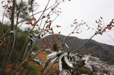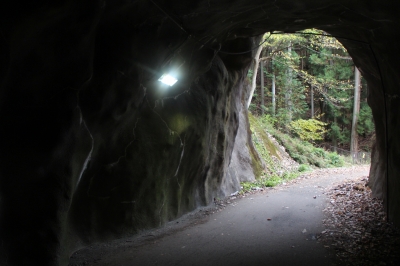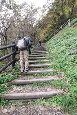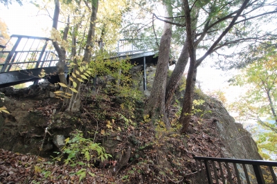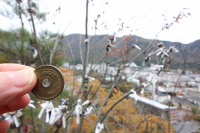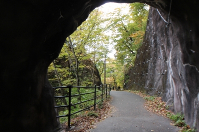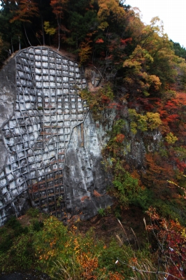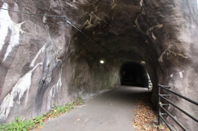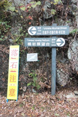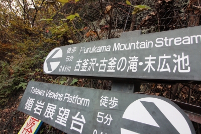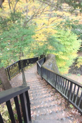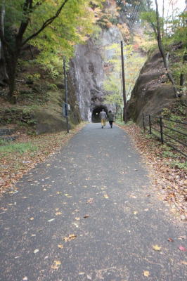![]() 「楯岩」の楯は戦いの時に使う楯に似ている岩なので名づけられました。 楯岩の頂上には展望台があって、見晴らしがいいらしいので登ってみました。 ![]() ![]() 分かれ道に 右に行くと楯岩展望台 左に行くと古釜の滝 という看板があり、 まずは展望台へ ![]() ああ、これが手彫りのトンネルですね。 案内板によると、このトンネルは「母なる胎内トンネル」。 ![]() トンネルの途中になぜかこんな穴が開いていて、下の景色が見えました。 自然の額縁みたいで素敵でした。 ![]() ![]() ばばあは赤ちゃんで、胎内からもうすぐ生まれます。 ![]() ![]() ![]() 展望台までもうちょっと。 11:20展望台に到着 想像とは全く違い、狭ーい所でしたが、周りの山々や鬼怒川温泉街が一望できました。 展望台にいたら、中国語らしき言葉を話しているグループがいたので 簡単な中国語で話しかけてみたら、やっぱり中国人でした。 ばばあ「ウォー シー リーベンレン ニーナー? 私は日本人ですがあなたは?」 その人「ウォー シー チョングォ レン 私は中国人です。」 ばばあ「ニィー ハオ マー? お元気ですか?」 その人「ハオハオ 元気ですよ。」 ばばあが疲ーれた顔して「ブーハオ 元気じゃないです。」と言ったら 笑われたのが面白かった。 ![]() 展望台から「手の届く枝」と「手の届きそうにない枝」に おみくじが結んでありました……何のために??? 2メートル先の絶対に届かないような枝にどうやっておみくじをつけたものか??? へたしたら、下に落ちてしまいます。 ![]() しかも五円玉もいっぱい…… 財布を見てみたら、奇跡的に五円玉が1つだけあったので、私も枝に通してみました。 ![]() 私たちのホテルおおるりが見えました。ヤッホー! 展望台から降ります。 ![]() ![]() 左上の写真の土砂崩れ防止用のコンクリート壁を見て、 じじいが変なことを言ったので滅茶苦茶笑いました。 「あれが鬼怒楯岩か」…… ![]() 昔、トンネルがなかった時代は今はわずかに痕跡が残る階段を登って山を越えていました。 この階段を登って山を超えてみたかった……。 ![]() ![]() 橋に戻る前に、せっかくなので今度は左側の古釜の滝に行ってみました。 ![]() きゃー こんなとこで熊が出没したら、どうすればいい…… ![]() 熊出没におびえながらも、来てよかったー!!! 素晴らしい池でした。 ![]() ![]() |