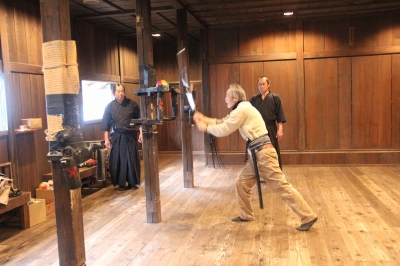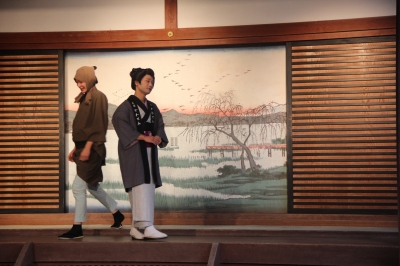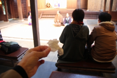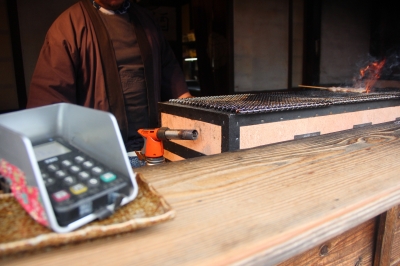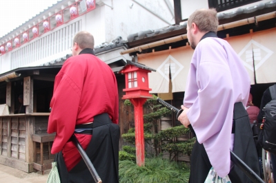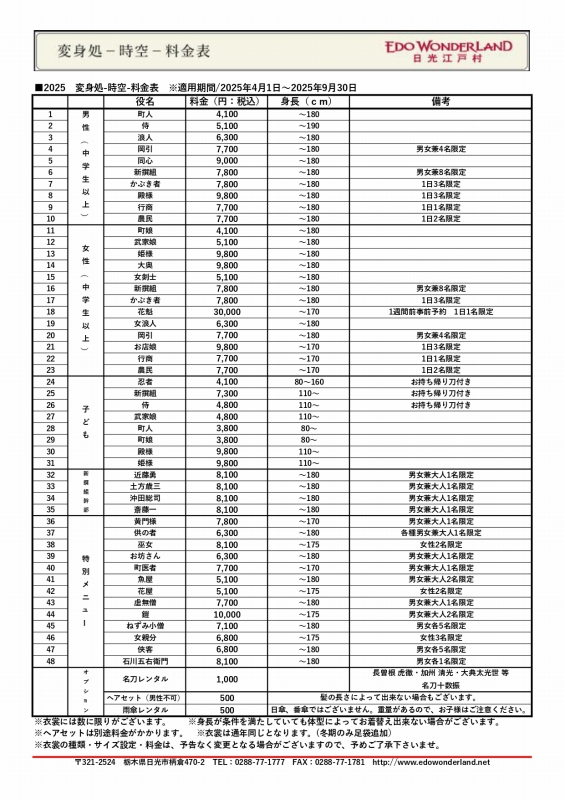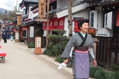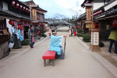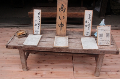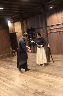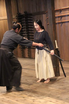 ![]() 昨日と同じく、鬼怒川温泉駅構内でフリーパスチケット(2人で1640円)を買って 1:30発のバスに乗って日光江戸村に行きます。 ![]() ![]() 日光江戸村に到着。 車の駐車料金を払うゲートが江戸時代の籠みたいで素敵です。 関東地方に住んでいる人なら、修学旅行などで行ったことがある人が多いそうです。 ![]() さりげなく江戸の住人が歩いていますが、 その歩き方や目線が江戸っぽい……と感じるのは気のせい? いいえ、きっと歩くのも演技しています。 通行手形(入場券)を買おうとしたら、左下の写真の粋なスタッフのお兄さんが 「もうちょっとで午後2時からの午後料金になるのでもう少しお待ちください。」 普通は1人5800両ですが、午後料金は3000両で随分お得です。 2人で6000両なり。 江戸時代の幕末で1両=1万円だったので、6000万円払ったことになります(笑)。 日光江戸村の中は江戸時代なので、お金の単位も円ではなく両になります。 ![]() ![]() かっこいい通行手形を門番のお兄さんに見せて中に入りました。 ![]() ![]() 下駄屋のディスプレイがかっこいい! ![]() 新選組に変装していらっしゃるお客さんですが 座り方が新選組っぽくてかっこいいと思います。 ![]() 外国の子ども忍者ですが、足元がスニーカーというのが残念ポイント。 ![]() 自分の中のイメージ(というか時代劇の世界)通りの江戸の街並みなのですが 道路が舗装されているので、現実に戻されないように地面を見ないようにします。 それに対して、テレビや映画の時代劇では土埃とか見えるので、舗装されていないと思います。 ![]() 美味しそうな匂いがしてきました。 炭火焼きのお店がありました。 「山くじら焼き」を1つ(700両)注文して2人でシェアーしました。 「山くじら」というのは江戸時代の隠語で、昔は猪(いのしい)肉のことでしたが、 今は豚肉です。 江戸時代は食肉が禁じられていたので、許可されていた鯨のように 食べられていました。 江戸の町でこっそり肉を食べたら、美味しさも増しました。 ![]() タイムスリップして700両をデビットカードで支払いました。 ![]() 金髪外国人の素浪人が通ります。 ![]() ここが行きたかった「侍修行館」です。 ここは入場券があれば無料で修行できます。 午後2:50のに予約することにしました。 10分前の2:40から受付です。 「しばし待たれよ。」 よかった……次は午後4:10までありませんでした。 ![]() 左の欧米系の少年は侍修行体験したかったのですが、 2:50の予約分はもういっぱい(6人定員)になったので次は 4:10まで待たなければならないことを侍スタッフが英語で説明しています。 やはり侍修行は人気なので、江戸村に着いたらすぐに予約しておかないと こういうことになるんだと思いました。 ![]() ![]() 「いざ! 」さあ、2:50になりました。 30分間の修行です。 礼儀作法から始まり、刀のさやからの出し方としまい方、血の振り切り方(怖い) 一通り、教えてもらった後、ひとりひとり指南役(先生)の前でやりました。 6人の侍修行者のうち、最初の女性は、刀さばきがとても上手で、指南役が 「剣道をしていますか?」と質問したら、「昔子どもの時ですが剣道をしていました。」と。 やっぱりそういうことって自然と身につくんですね。 いよいよじじいの番になりました。 ![]() ここからは「侍言葉」で!!! 礼!……「拙者、じじい侍でござる。」 ![]() ![]() 最後に紙風船(人のかわり)を刀で切って割ります。 集中力が必要です。 ![]() 指南役「大儀であった。」(ご苦労様) ![]() 次は”ばばあ侍”参上……「いざ!」 真剣ではないものの、刀って重いものだと思いました。 指南役に丁寧に教えて頂きました。 「教えて頂き、かたじけない」(ありがとうの意味) ![]() 礼!……「拙者、ばばあ侍でござる。」 ![]() ![]() ![]() 紙風船、一発で切りました。指南役が「お見事!」 ばばあ 「お褒めいただき、恐悦至極にございます。」 ![]() ![]() ![]() 左の建物は御不浄(トイレ)でござる。 ![]() ![]() こちらは大岡越前で有名な「南町奉行所」です。 喜劇仕立ての芝居を無料で見ることができます。 ![]() ![]() ![]() ![]() この紙は「投げ銭」用の紙で、入口でもらいました。 この紙にお金をつつんで、投げ銭(チップ)するという「投げ銭体験」です。 ![]() ここでおせんべいの手焼き体験をしてみることにしました。 1枚250両で2人でシェアーして食べました。 こちらのお店は本来の江戸らしく、 タイムスリップしてデジタル支払いはできず現金でした。 ![]() 焼きたては美味しかった。 昔、ばばあのおばあちゃんが炭でお餅を焼いてくれたのを思い出しました。 おばあちゃんのぽたぽた焼き…… オーブントースターでチンして焼くのとは香ばしさが全然違うし、炭のいい匂いクンクン 江戸時代の便利箱(上)と現代の便利箱(下)です。 現代のは私たちの家で30年前から使っている便利箱です。 ![]() 水戸黄門に必ず登場する「越後屋」がありました!!! あのワルの越後屋です。中には越後屋文左衛門がいて 「お主も悪よのう」 と言うのかと思ったら
