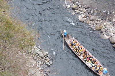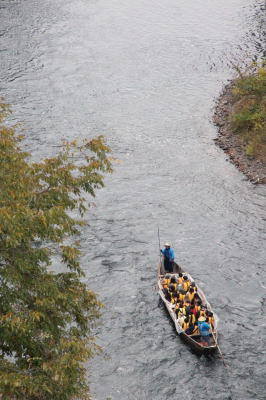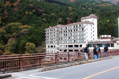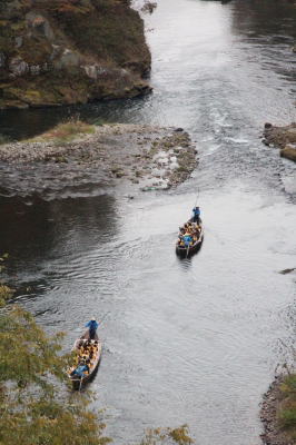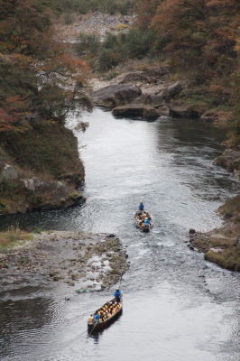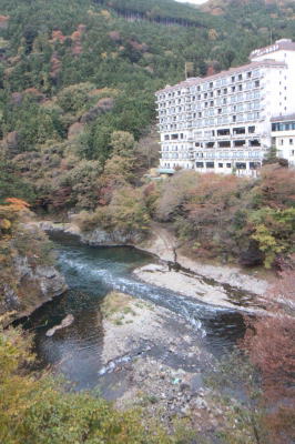 ![]() 部屋のベランダから眺めた鬼怒川です。 上流側(右の写真)には岩がたくさんありますが 下流側(左の写真)ーライン下り乗船場方向にはほとんどありません。 元々はあったらしいのですが、ライン下りのために取り除いたそうです。 取り除いても、大雨が降って洪水になると、大きな岩はまた流れてくるので その時にはまた取り除かなくてはなりません。 |