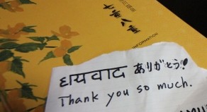 ![]() お部屋に帰ってから、ホテル七重八重のお茶菓子の「きぬの清流」を 清流(鬼怒川)を見ながら食べました。 あっさりして美味しい。 また例によって急須で緑茶を入れて、ペットボトルに注いで じじいとばばあのお茶を2本作りました。300円の節約。 ![]() 今日はこの後、チェックアウトなので、お部屋のお掃除をしてくれる人に サンキューカードを書きました。 どうもネパール人のスタッフが多いホテルのようなので、 スマホのグーグル翻訳で調べてネパール語で書いてみました。 スマホというのは何て素晴らしいものなんでしょうか!!! |