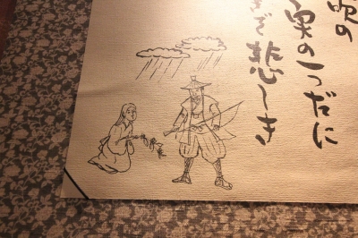 朝食前にロビーをうろうろしていたら、短歌が書かれている掛け軸がありました。 「七重八重 花は咲けども山吹の実の一つだになきぞ悲しき」 あれれ、この短歌、一昨日の晩、東京浅草演芸ホールで聞いた落語に出てきた 短歌じゃないですか!……びっくり!……何という偶然。 室町時代の武将の太田道灌が、急な雨宿りで農家を訪ねた時に、 蓑を借りようとしたところ、娘に一輪の山吹の花を差し出されたという話が元になっています。 山吹に実が一つもなっていないことと、蓑が一つもないことをかけて 貧しいことを悲しんでいる歌なのです。 その時に、道灌は怒ったのですが、後になって、娘の「まごころ」を 理解できなかったことを深く後悔しました。 ![]() ホテル七重八重さんの名前の由来が「まごころ」を歌ったこの短歌だったんですね…なるほど。 |